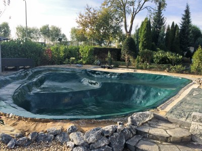 Die Verwandlung eines Folienteiches in einen GFK - Teich.